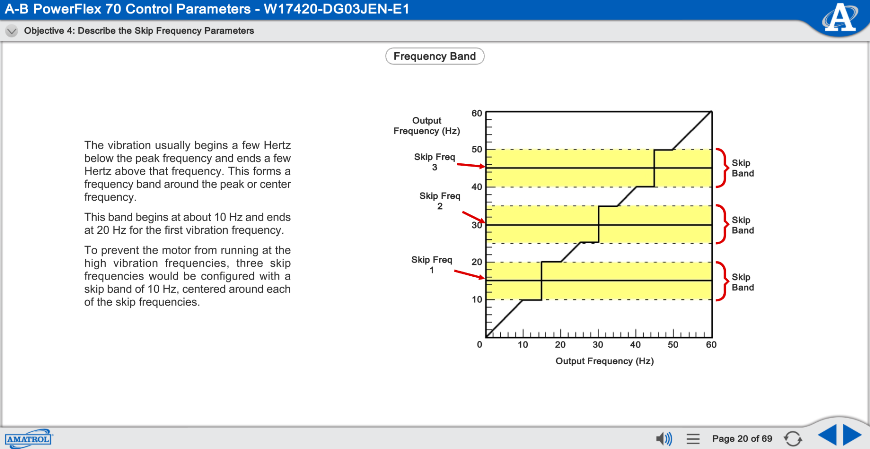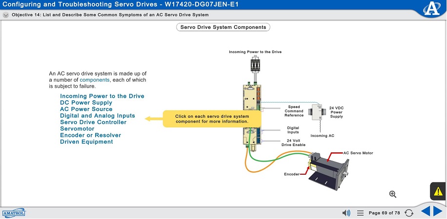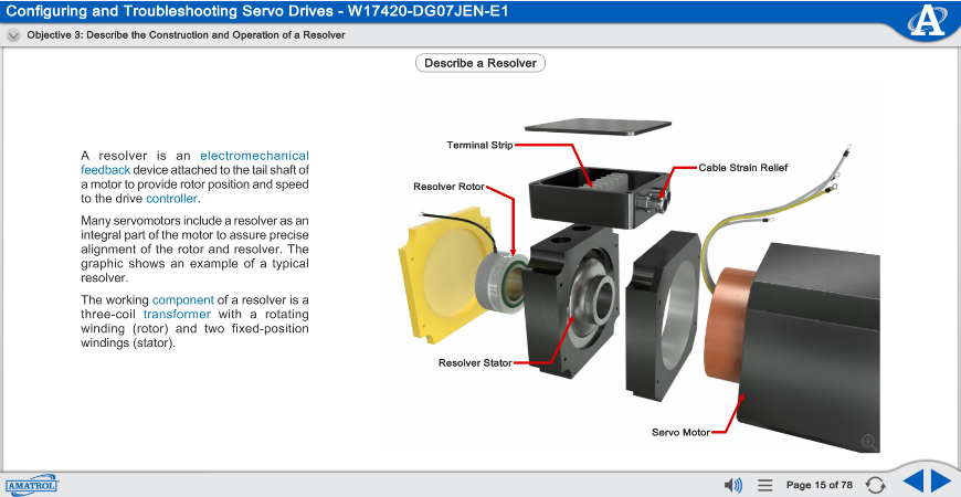 Amatrol’s multimedia eLearning blends theory with hands-on application using 3D animations, videos, voice-guided instruction, and interactive assessments. The curriculum scaffolds learning from foundational VFD concepts through advanced drive systems troubleshooting.