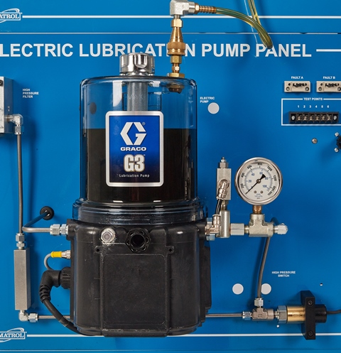 The 950-CL1 features an electric pump and a programmable system controller so learners can practice operating and programming industry-style components while developing strong lubrication fundamentals such as oils, greases, and lubricant management.